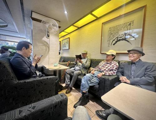 2022년 10월 13일 목요일 매달 열리는 진고개모임의 점심 식사를 마치고, 어김없이 충무로 초원다방으로 향했다. 그곳에서 1965년 <갯마을> 고인이 되신 김수용감독님의 작품에 참여하신 전조명촬영감독, 김수형조감독과 우연히 조우하게 되었다. 좌로부터 한국영화예술원 노만 원장님, 김종원 영화평론가, 전조명 촬영감독...